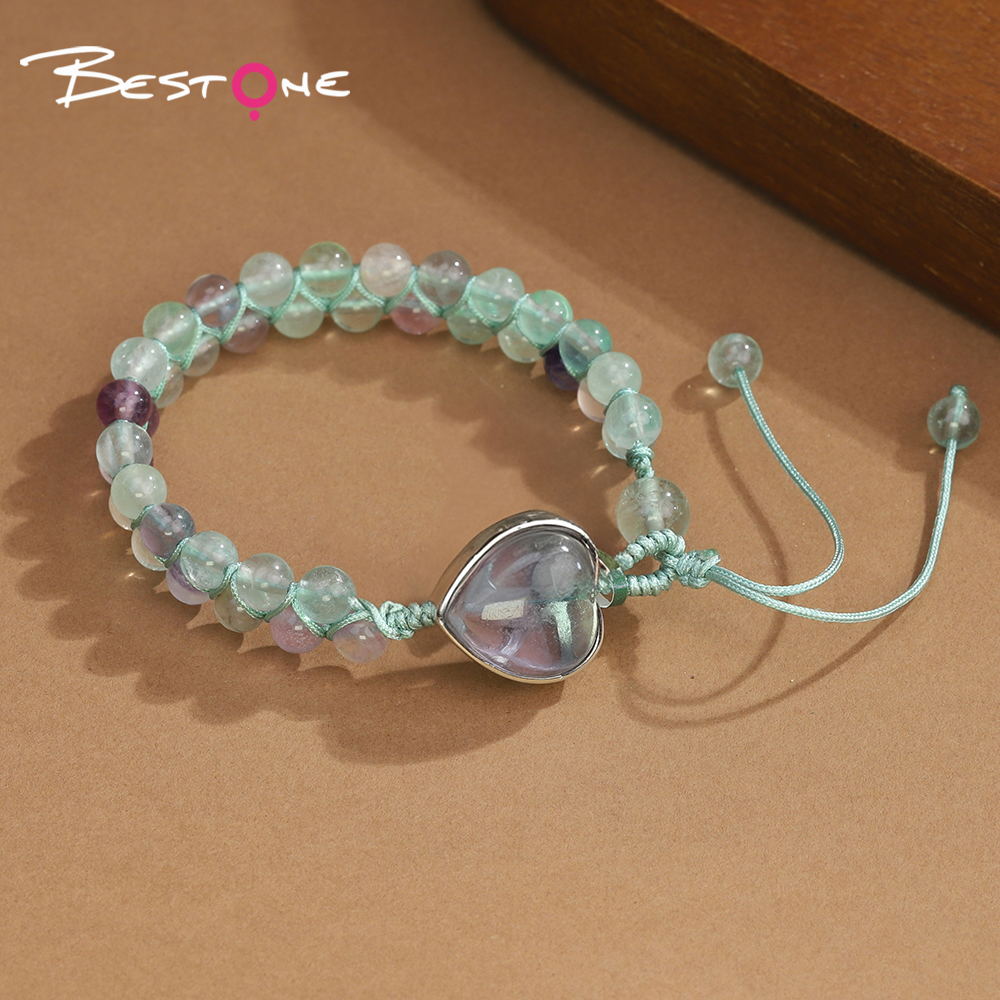 Браслеты выполнены на прочном плетёном шнуре, подобранном под цвет минералов: коричневый для тигрового глаза, розовый для розового кварца и зелёный для флюорита. Подвеска-сердце служит центральным визуальным элементом, формируя гармоничный и современный дизайн. Благодаря качественной ручной сборке изделия удобны в носке и подходят для длительного использования.