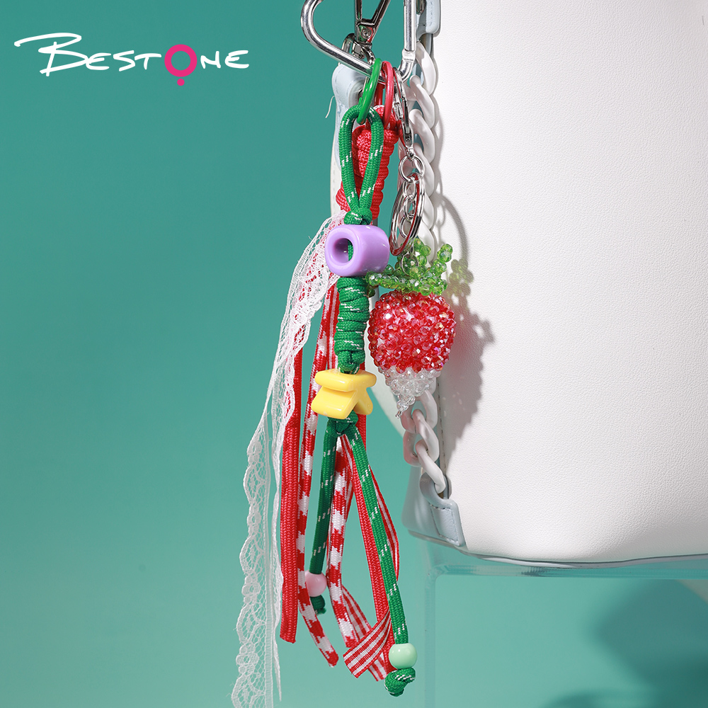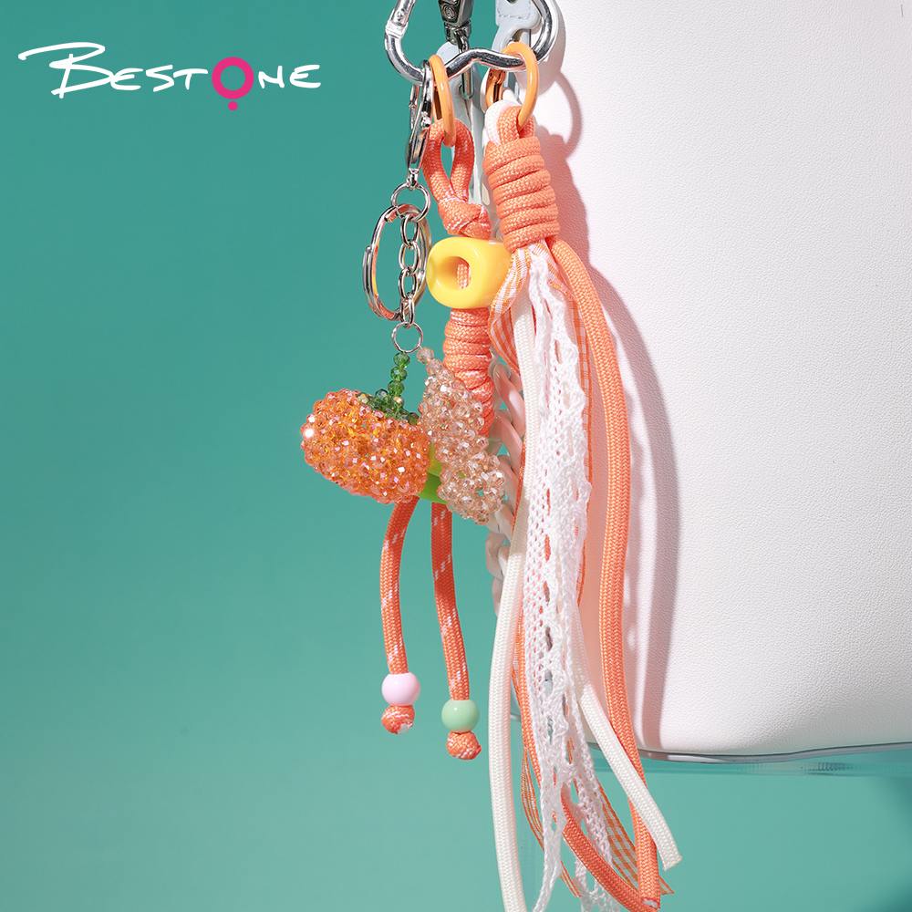 Эта коллекция ярких и забавных брелоков и подвесок для сумок сочетает цветные элементы, текстурные шнуры и декоративные мини-фигурки, создавая стильный и оригинальный аксессуар.