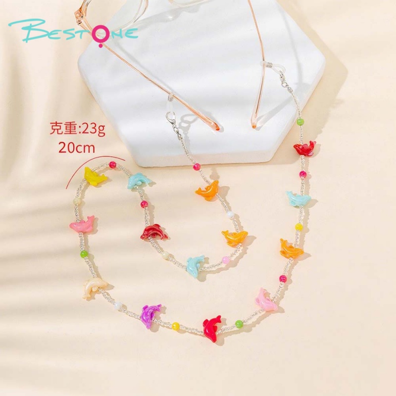 Эта многофункциональная цепочка сочетает игривые разноцветные акриловые подвески (дельфины, банты, бусины) с бусинами с глянцевым гальваническим покрытием, объединяя стиль и оригинальность для потребителей, ценящих индивидуальность и практичность. Независимо от использования в качестве цепочки для очков, держателя для маски, ожерелья или декоративного шнура — легко адаптируется к различным сценариям.