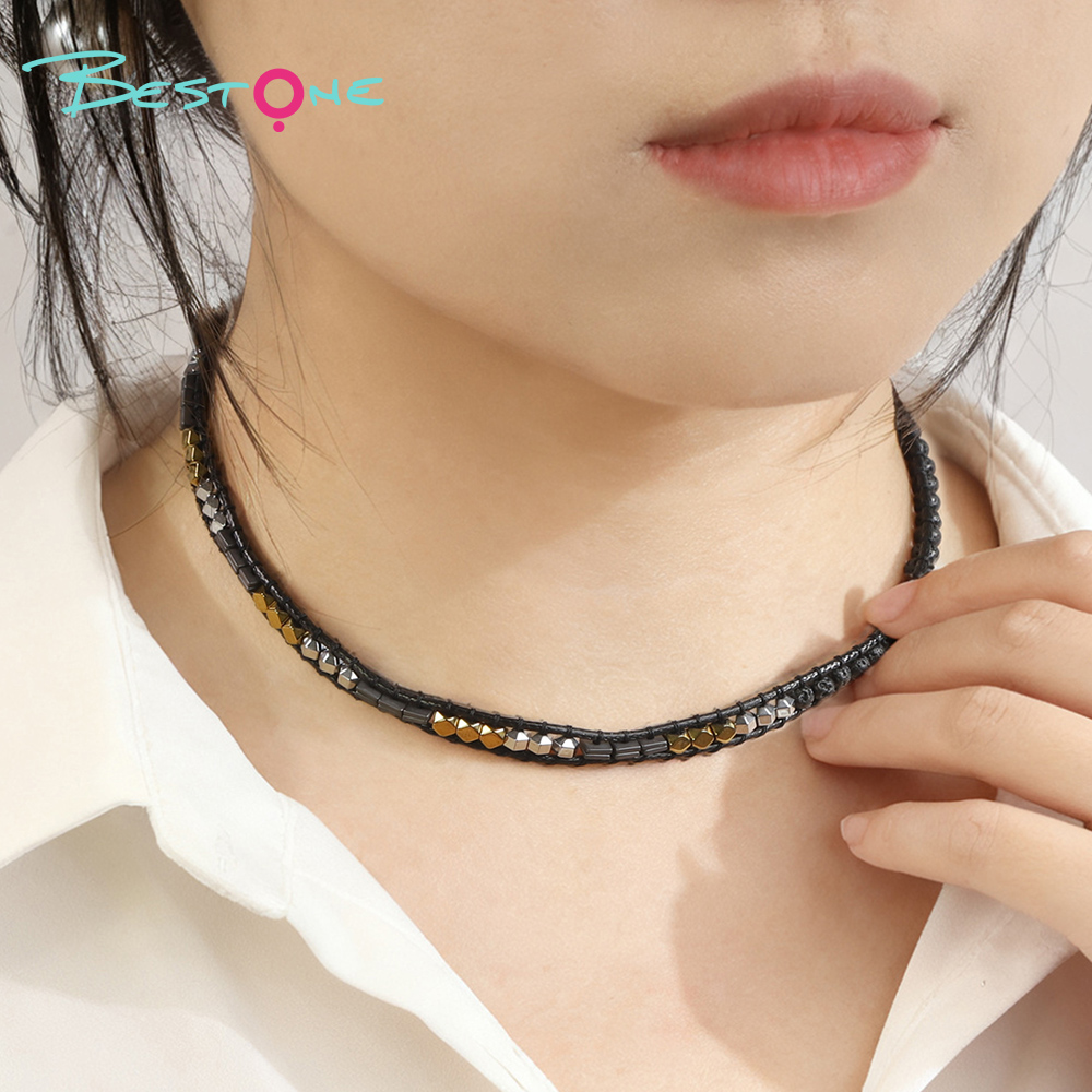 | Модель | Ожерелье из вулканической лавы с металлическими кубиками и плетёным вощёным шнуром |