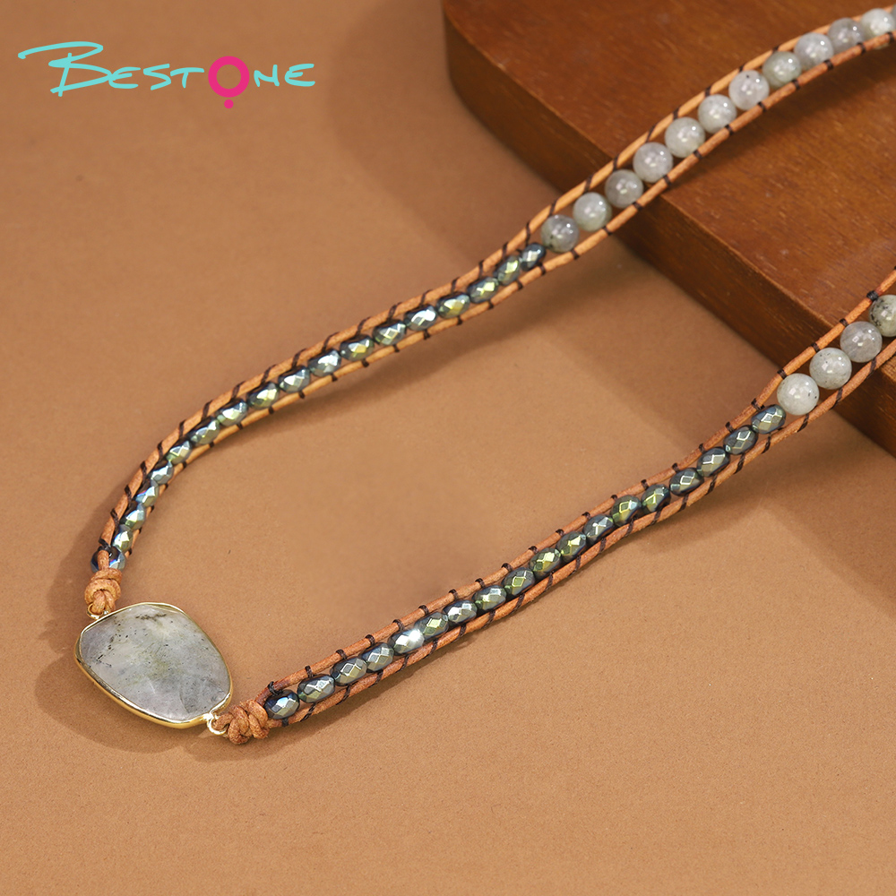 | Модель | Длинное ожерелье с натуральными камнями, декоративными стеклянными элементами и металлическими бусинами |
