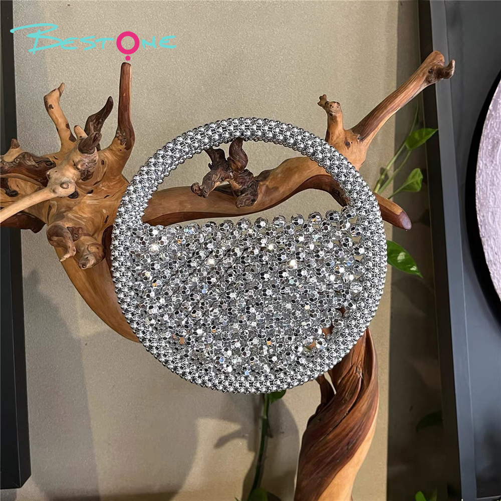 Полумесяц сумки с акриловыми бусинами (20×7×15 см) доступны в трёх цветах: золотой, серебряный и чёрный. Сочетание срезанных и круглых бусин создаёт современный и стильный эффект, привлекающий внимание.