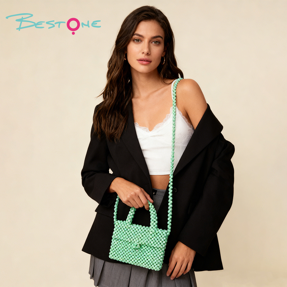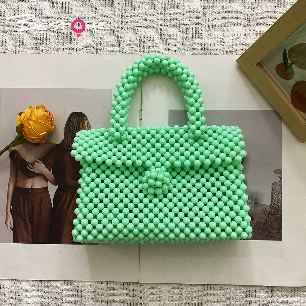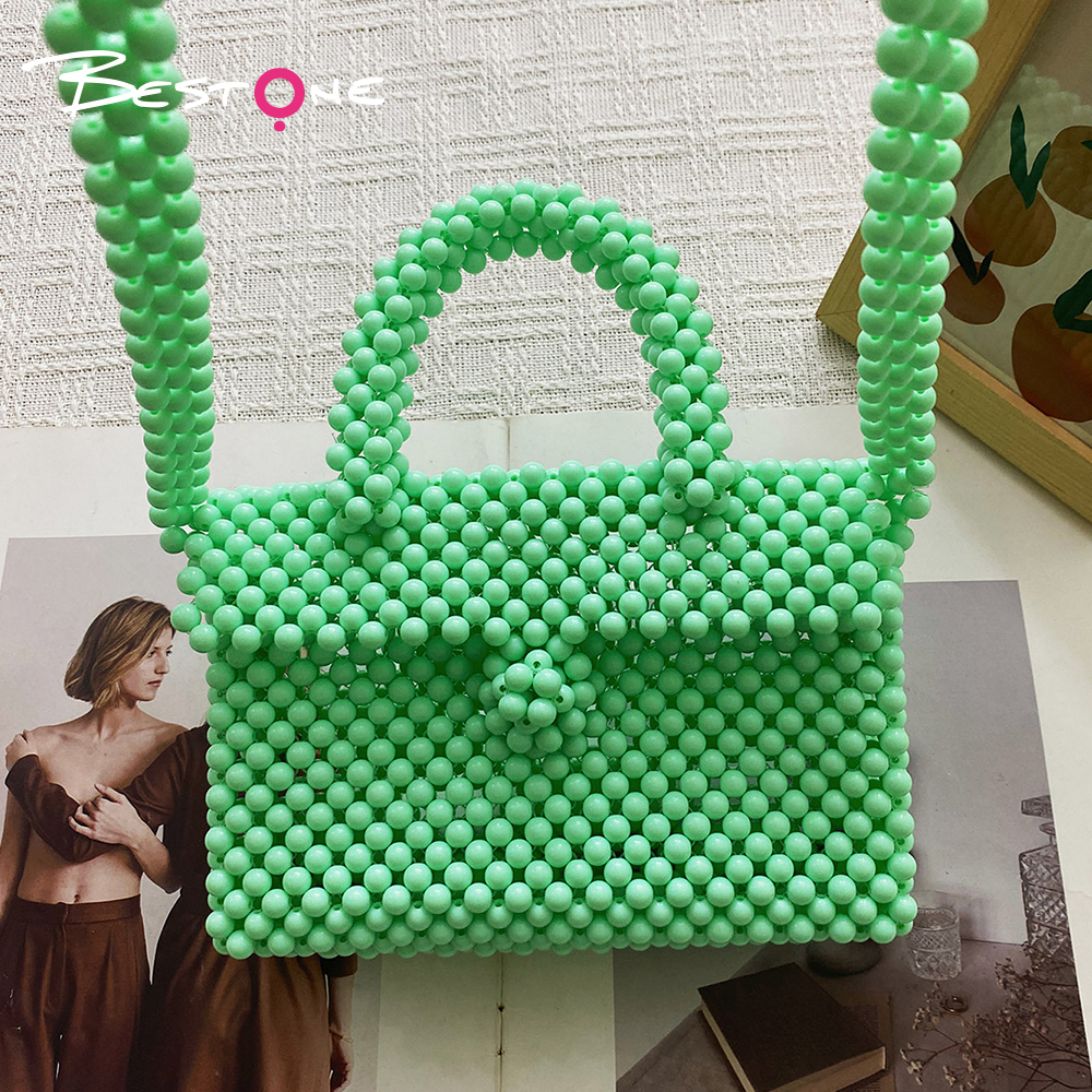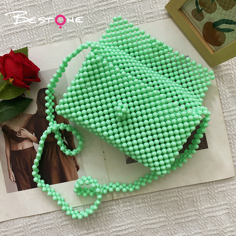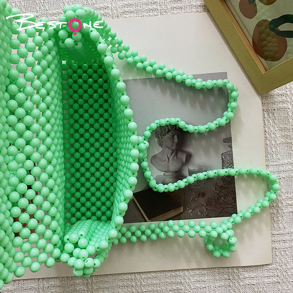 Эта стильная сумка выполнена из гладких зелёных акриловых бусин, которые придают аксессуару современный и свежий внешний вид. Прямоугольная форма в сочетании с плотным плетением обеспечивает прочность и аккуратный силуэт. Благодаря ручной сборке каждая бусина надёжно закреплена, что делает изделие долговечным и устойчивым к ежедневному использованию.