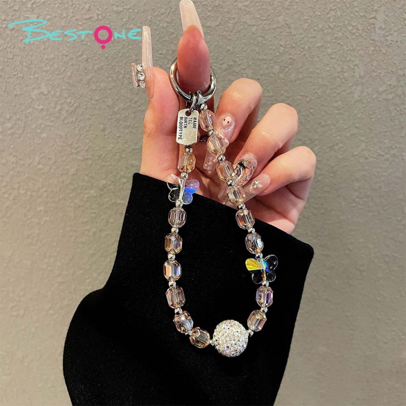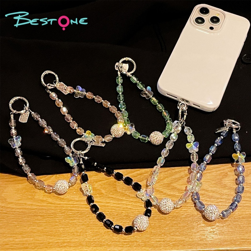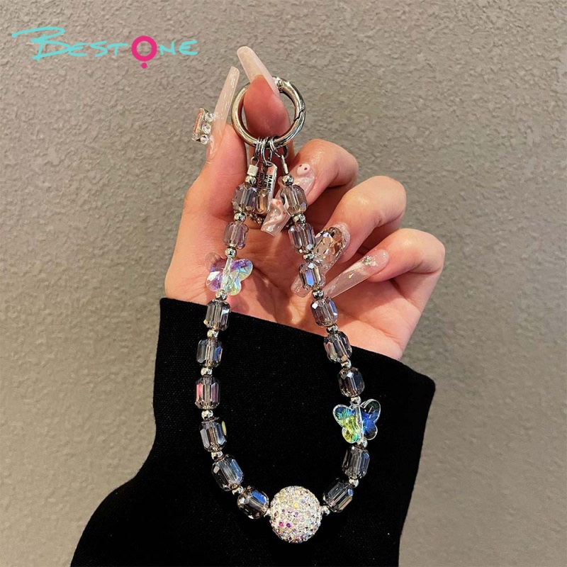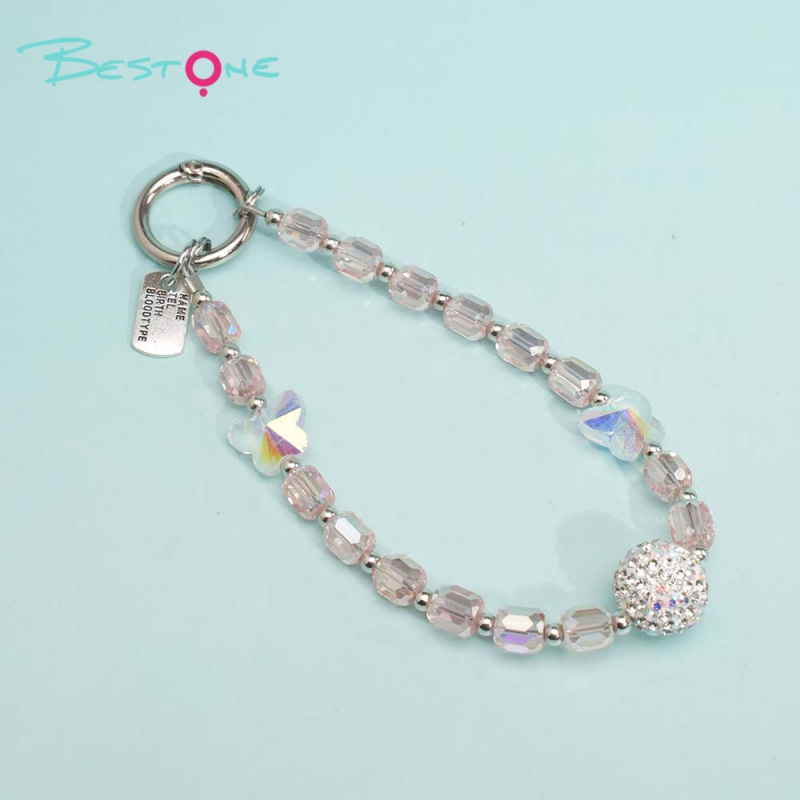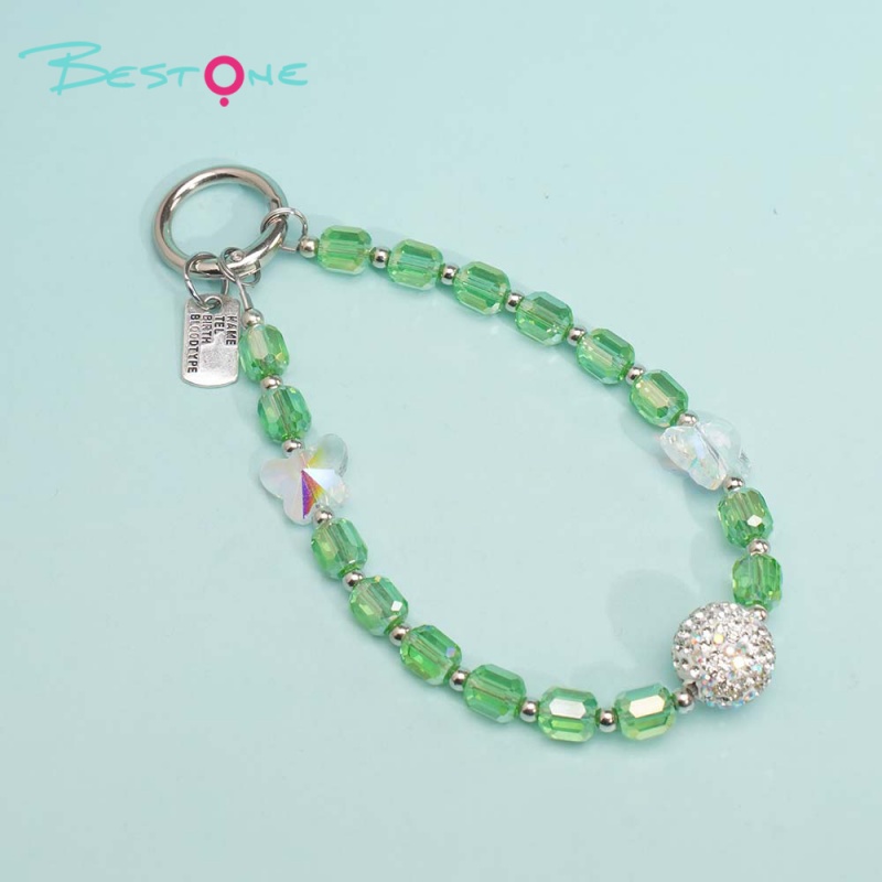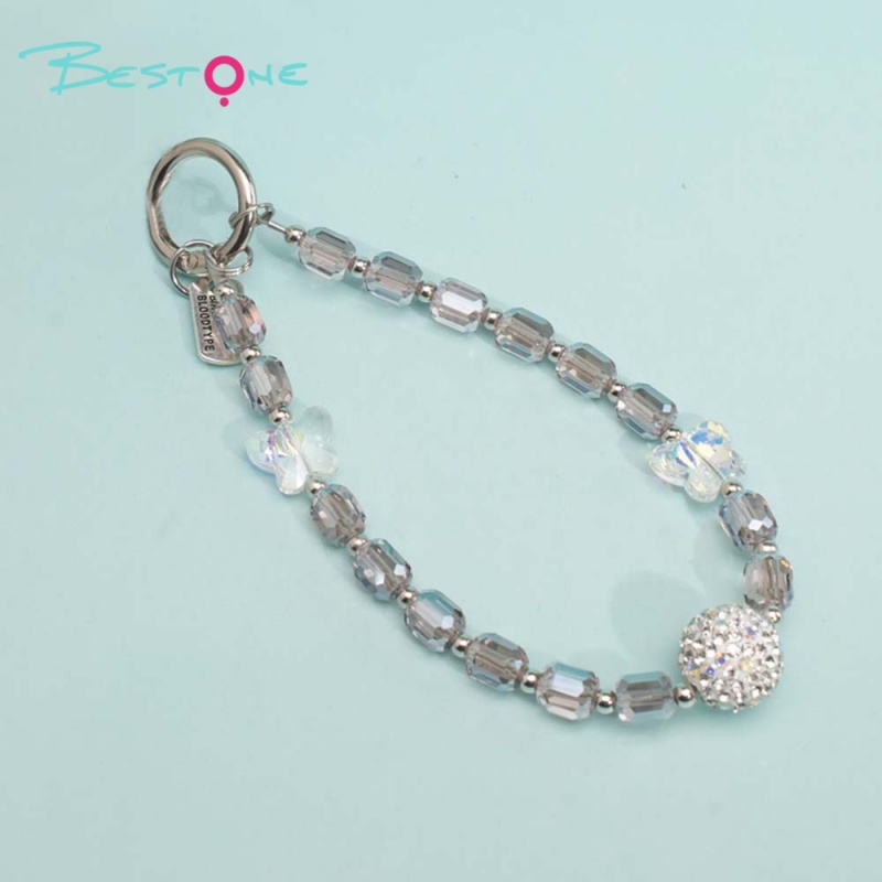 Данный короткий шнурок для телефона выделяется изысканным дизайном со стеклянной бабочкой с цветным напылением. В сочетании с гранеными цветными стеклянными цилиндрическими бусинами и серебристыми круглыми стразами создается кристально-прозрачный, многослойный и выразительный образ. Оснащение металлической буквенной биркой и пружинным карабином обеспечивает простоту крепления и добавляет современности.