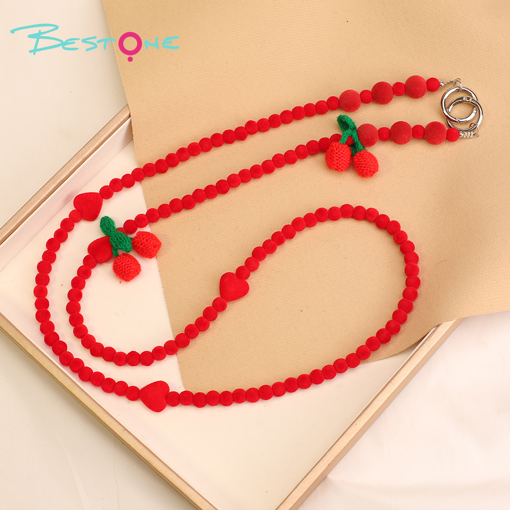 | 3127390 | Красный ремешок с вязанными круглыми бусинами и мягкими сердечками | Акрил, плюш, нить | 120 см |