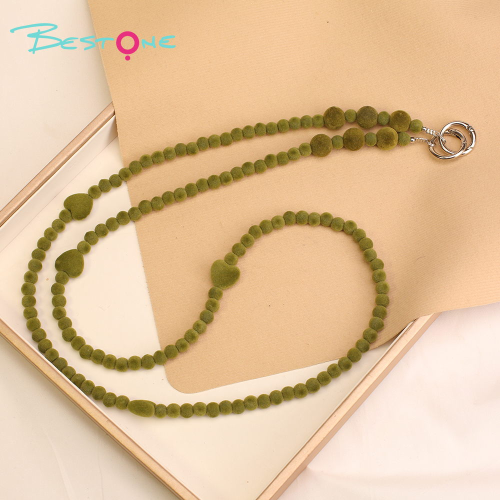| 3127392 | Зелёный ремешок с вязанными круглыми бусинами и мягкими сердечками | Акрил, плюш, нить | 120 см |