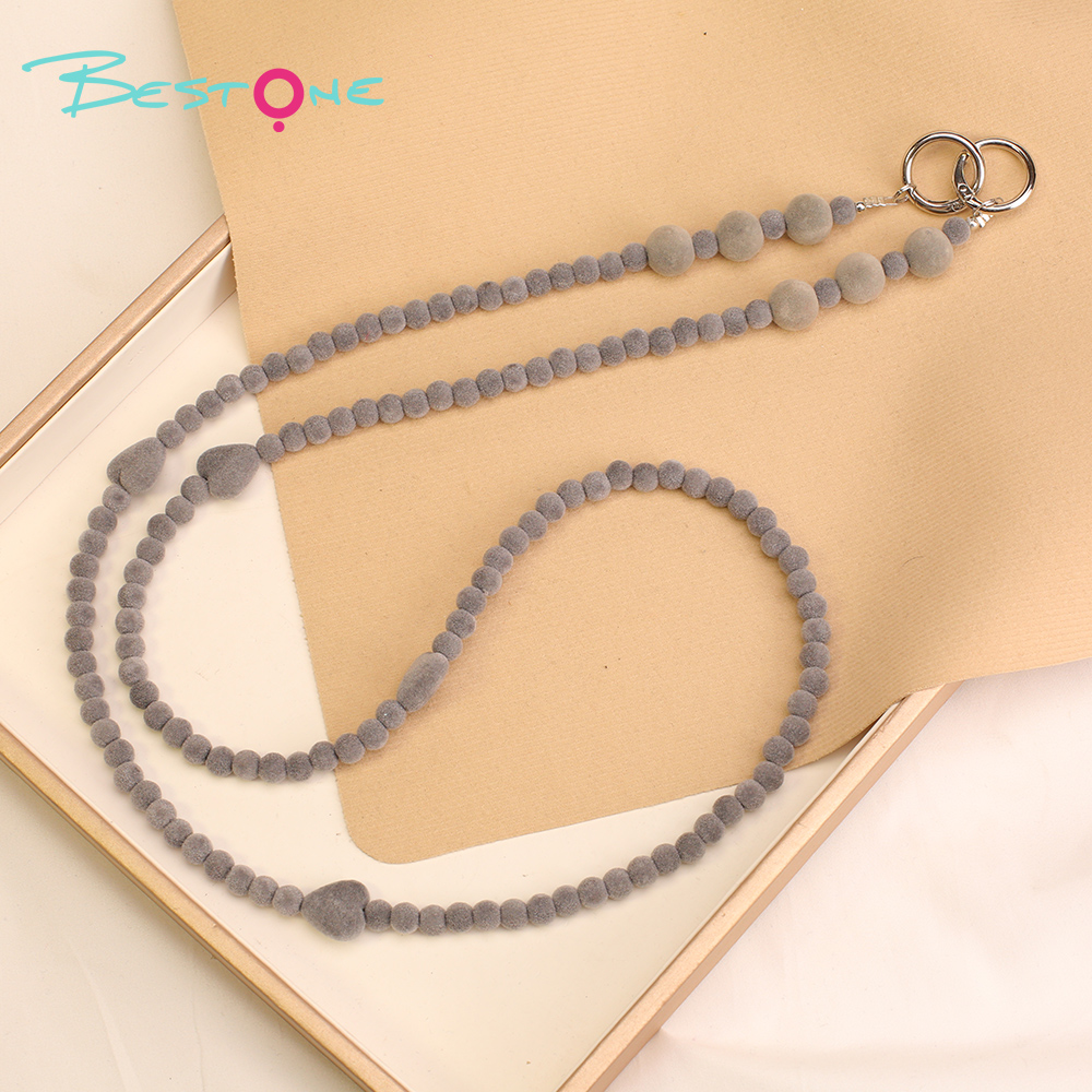 | 3127393 | Серый ремешок с вязанными круглыми бусинами и мягкими сердечками | Акрил, плюш, нить | 120 см |