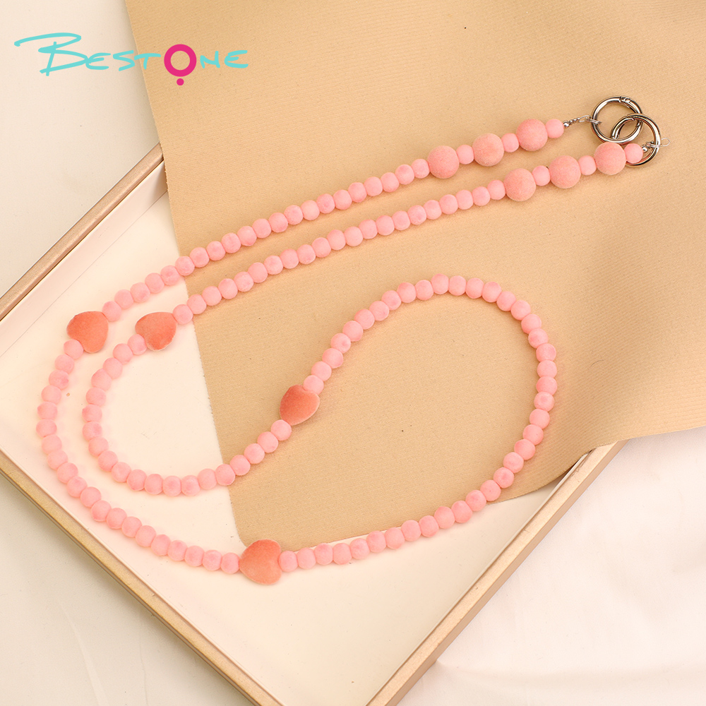 | 3127395 | Розовый ремешок с вязанными круглыми бусинами и мягкими сердечками | Акрил, плюш, нить | 120 см |